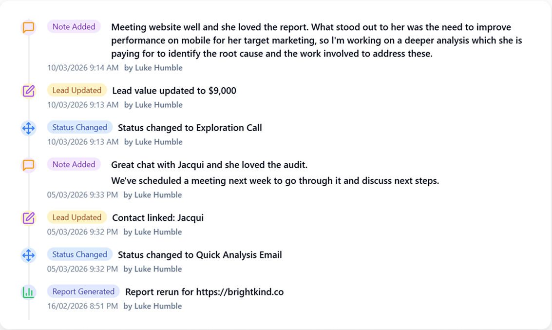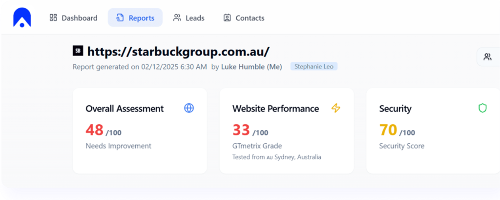 A hot lead would come in. They’d need a website audit. By the time Luke manually checked their site, took screenshots, wrote up findings, and sent a polished report… 48 hours had passed. And the lead had moved on.