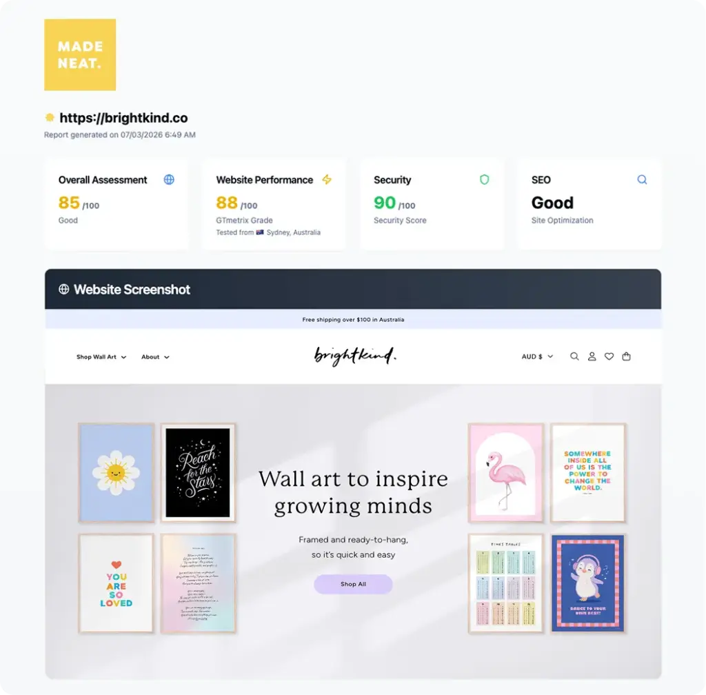 ProspectWP gives you the system Made Neat uses internally to audit websites, generate professional reports, and close clients and all in under 5 minutes. Every report is branded with your logo and designed to position you as the expert your prospects need.